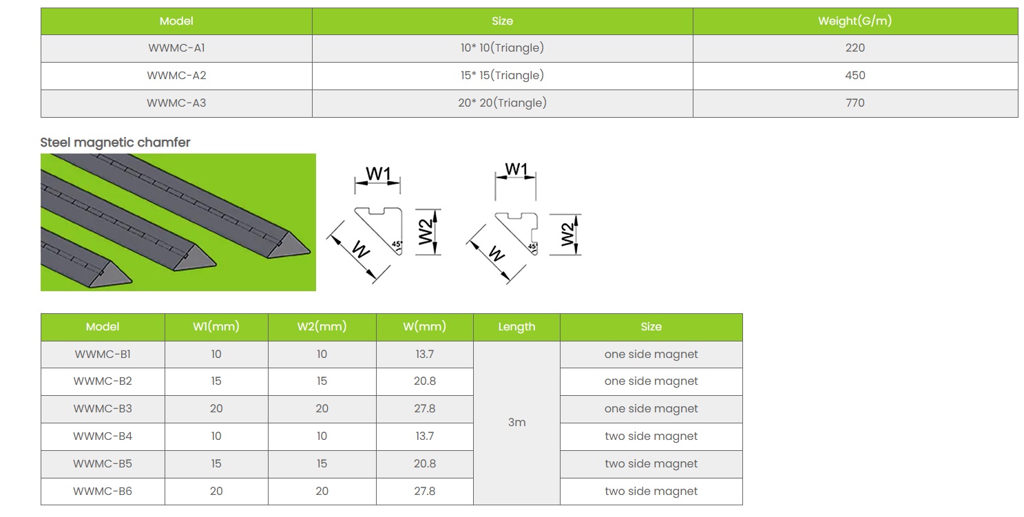 Materia adhibita ad chamferam producendam vel tutandam omnia alia determinat: quousque durat, quomodo impacto et umori respondeat, sive reponi vel adaequari possit, et quid in plenam vitae curriculi projectionem constat. Aluminium rigidum vel chamfer PVC denudat in mercatu decenniis dominatum est, sed Purgamentum Magnetic Chamfer systemata significantem tractionem in concreta formarum, testarum institutione et architecturae consummatione obtinuerunt quia problemata quae rigidi profile simpliciter non possunt — specie, adhaesio sine fasteners, figura retentione cogente, ac sine labore remotionis sine superficie laedendi.